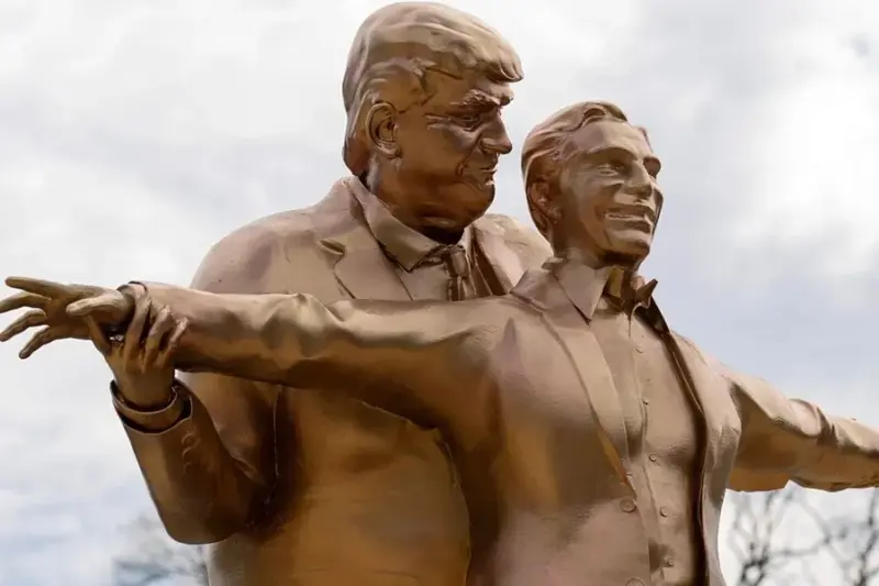 According to reports, the statue is intended as political commentary, using pop-culture imagery and satire to draw attention to the controversial relationship between the two men.