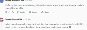 One user commented, "It's funny that there weren't ready to fund the movie properly and now they are ready to reap all the benefits."