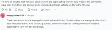 Despite the political backdrop of the film and its unflinching portrayal of terrorism emanating from Pakistani soil, reactions have surfaced on Reddit and other Pakistani social platforms.