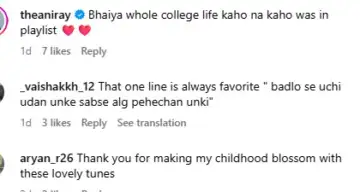 One user commented, "Bhaiya whole college life kaho na kaho was in playlist."Another user commented, "That one line is always favorite " badlo se uchi udan unke sabse alg pehechan unki."