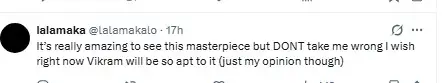 Another user reacted, "It's really amazing to see this masterpiece but DONT take me wrong I wish right now Vikram will be so apt to it (just my opinion though)."