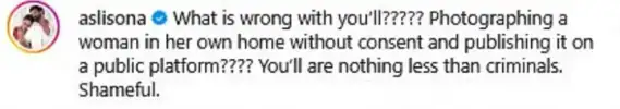 Actor Sonakshi Sinha has also stepped forward to condemn the incident, calling out the media portal for its intrusive and unethical behaviour. Shocked by the leaked photos, Sonakshi publicly slammed the publication in the comments section, writing, "What is wrong with you'll????? Photographing a woman in her own home without consent and publishing it on a public platform???? You'll are nothing less than criminals. Shameful."