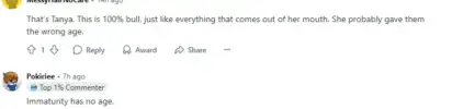 One user reacted, "That's Tanya. This is 100% bull, just like everything that comes out of her mouth. She probably gave them the wrong age."