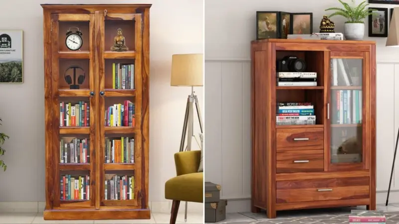 The Wood Bookshelf Furniture is a classic and timeless option for displaying your collection. With its wooden construction and glass sliding doors, it exudes a traditional charm. The spacious shelves provide ample storage space for books, crockery, or decorative items.
