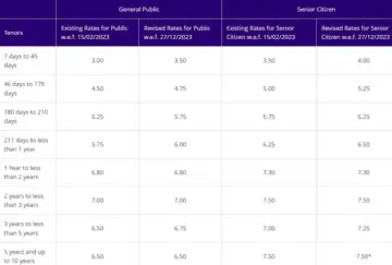 When the tenure is between 21 months to 2 years 11 months, the interest rate is 7 percent. When the tenure increases to 2 years 11 months to 35 months, the interest rate is 7.15 per cent. The new rates came into effect from Feb 9 onwards.