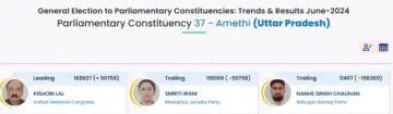 Lok Sabha Elections 2024: Union Minister for Women and Child Development Smriti Irani, seeking re-election from Amethi, the traditional Gandhi family bastion of Uttar Pradesh, is currently trailing.
