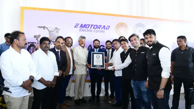 With the distribution of 5555 e-cycles, Chittoor district officially entered the Guinness Book. Guinness officials announced the record during the programme.
