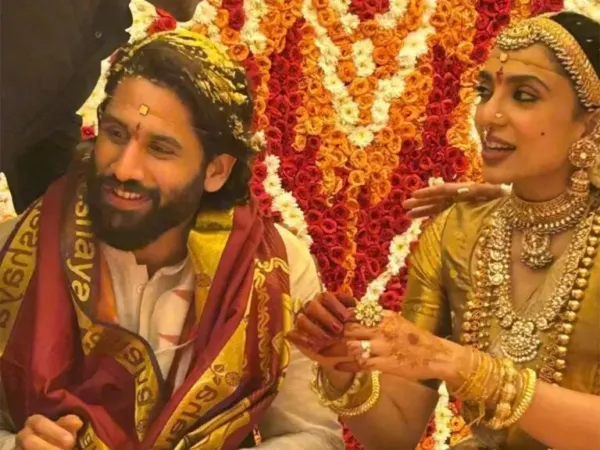 Though the couple has yet to share official wedding photos, glimpses of their first wedding photos have surfaced on social media. Sobhita looked stunning in a golden saree, while Chaitanya wore a traditional pancha with a kurta.