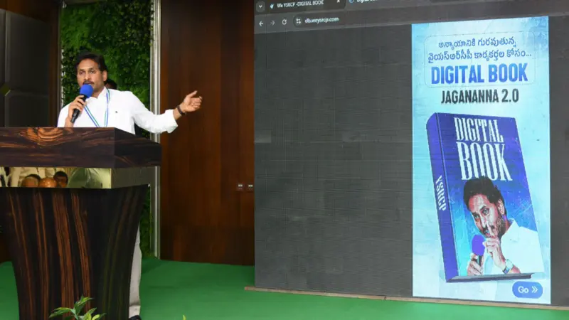 YS Jagan Mohan Reddy launched a Digital Book, directly challenging Nara Lokesh's Red Book. The move comes at a time when the Red Book is dominating Andhra Pradesh politics.