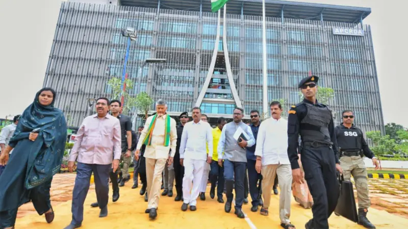 Andhra Pradesh Chief Minister Chandrababu Naidu inaugurated the CRDA office in Amaravati with traditional rituals. Veda pandits welcomed him and offered blessings.