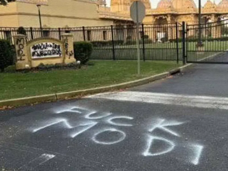 On Sunday night, the BAPS Swaminarayan Temple was vandalized with anti-modi slogans and graffiti. This offended the sentiments of the Hindu community in the US and India, demanding action. The Consulate General of India in New York and the Hindu American Foundation concurred and immediately gave a statement strongly condemning the act and called for a federal investigation.