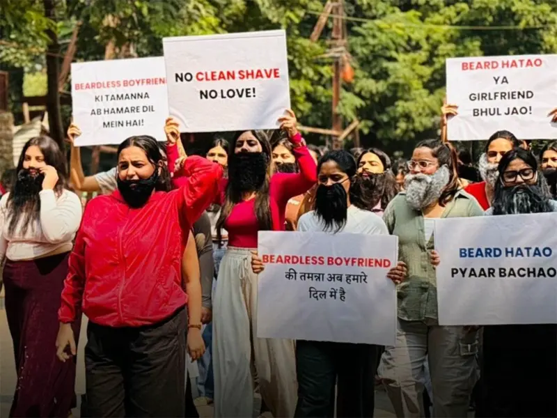 In a recent viral video circulating across social media, a group of women can be seen 'protesting' against beards under the banner 'Remove Beard, Save Love.'