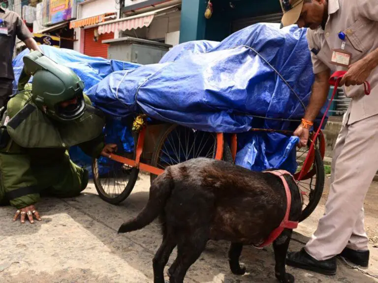 The bomb detection squad immediately rushed to the area along with sniffer dogs. Push carts, shops, canals were checked with metal detectors.