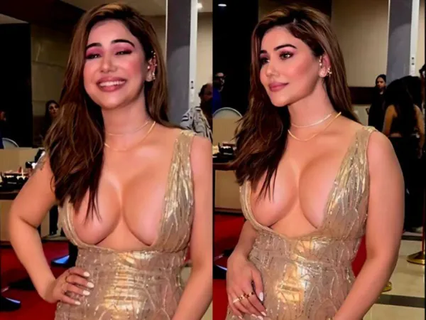Actress Kangna Sharma has created headlines for her bold look for another time as she appeared at a birthday party in Mumbai, where she was seen in a golden-colored gown.