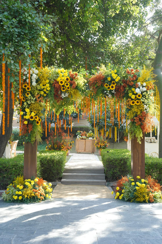 landscaped lawns and indoor halls. Daytime ceremonies like haldi find a natural setting in open gardens, while evening functions such as mehendi unfold in more atmospheric outdoor venues. Indoor spaces like Anant Mahal and Durbar Hall offer options for more structured gatherings, balancing the outdoor experience with controlled, elegant settings.