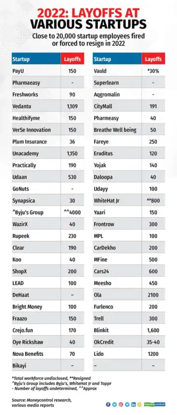 , resulting in the layoff of over 9,250 employees, or roughly half of the total number of employees laid off. Other startups that laid off employees were primarily from the fintech, web3 and crypto, and healthtech sectors, among others.