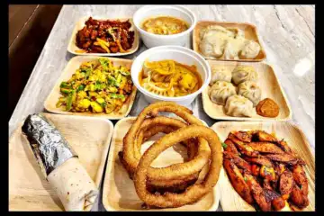 A variety of Nepalese dishes on offer. The ringed item is Sel Roti. Sourced by The Telegraph