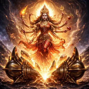 From the shattered Vajra, a powerful and fiery goddess emerged spontaneously, embodying the ultimate source of energy Adishakti. Her arrival marked a turning point in the battle against the fearsome demon Kalikot, who had terrorized the region. Joining forces with goddesses Renuka and Kalika, she swiftly defeated the demon, restoring peace and order. Her appearance teaches a profound truth: the destruction of evil is necessary for creation, protection, and balance in the world. Even today, devotees visiting Vajreshwari Temple report feeling her intense energy radiating from the self-manifested idol, reminding all of the transformative power of divine strength and courage.