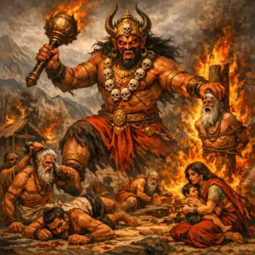 Kalikot, empowered by a powerful boon from Brahma, became almost invincible. He unleashed terror on sages, monks, and innocent people, causing widespread fear and chaos. Even Indra, the king of gods, had to step in personally, wielding his legendary Vajra to confront the demon. But in an unexpected twist, Kalikot's boon made him strong enough to break Indra's mighty weapon, shocking the gods and plunging them into fear. This shocking moment marked the beginning of divine intervention, teaching a timeless lesson: no matter how powerful one seems, true victory requires guidance, wisdom, and higher purpose beyond mere strength.