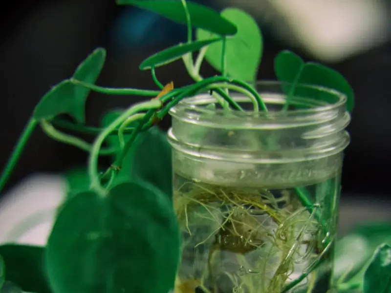 Syngonium can grow well in water and is also known for its air-purifying properties. A 6-inch stem cutting placed in water can develop roots quickly. Regular water changes every 2-3 days help maintain its growth.