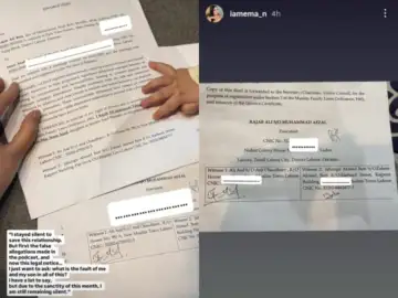 Fatima took to her Instagram stories and shared the screenshots of the legal documents sent by her husband. Distressing over the harsh treatment towards her and their son, she wrote, "I stayed silent to save this relationship. But first the false allegations made in the podcast, and now this legal notice… I just want to ask: what is the fault of me and my son in all of this? I have a lot to say, but due to the sanctity of this month, I am still remaining silent."