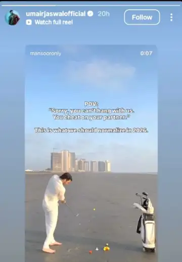 Umair Jaswal posted a short message on his Instagram story that read: "Sorry, if you cheat on your partner, you can't hang out with us. We should normalize this in 2026."