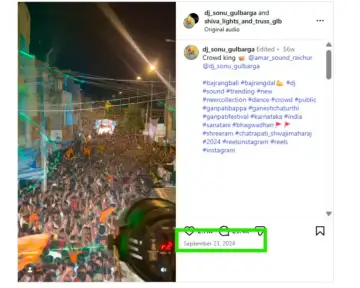 Subsequent investigation led us to another Instagram post by @dj_sonu_gulbarga, from September 23, 2024, featuring a longer version of the viral footage. The hashtags associated with the post, too, indicated that the footage showed Ganesh Chaturthi celebrations in Karnataka.