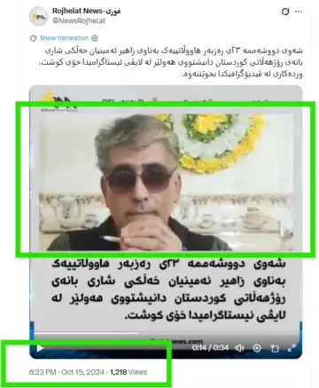 Additionally, an X post by shared part of the same video and also identified the man as Zahir Amini, a resident of Baneh in Erbil, who died by suicide during an Instagram Live broadcast. According to the translated text in the graphic, Zahir owned a dental clinic in Erbil and that before dying by suicide, he criticised the southern political parties and the PKK in particular.