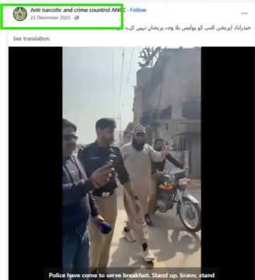 The footage was uploaded on Facebook by the Anti-Narcotic and Crime Control NGO on December 25, 2025, before the viral claim surfaced.