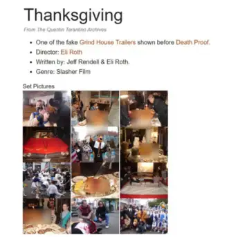 - We also found a page on the Quentin Tarantino Archives website describing Thanksgiving as one of the fake trailers shown before Dead Proof.