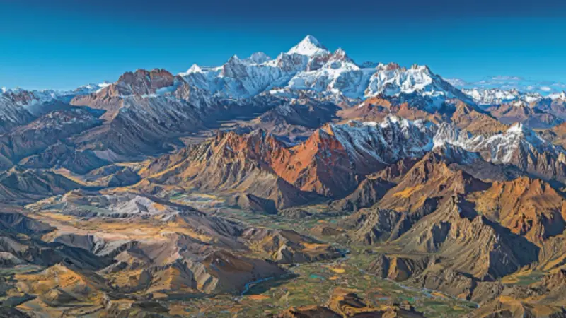 - Towering snow-capped peaks that reach nearly 7,500 meters.