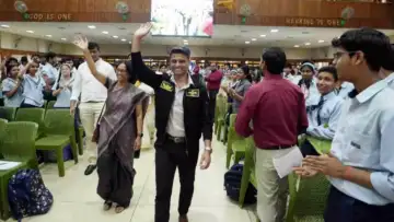 Lucknow, April 15 : Astronaut Shubhanshu Shukla returned to his alma mater, City Montessori School (CMS), today, interacting with thousands of students at a special event marking the International Day of Human Space Flight at the World Unity Convention Centre, where he was also honoured for receiving the Ashoka Chakra, India's highest peacetime gallantry award from the President of India.