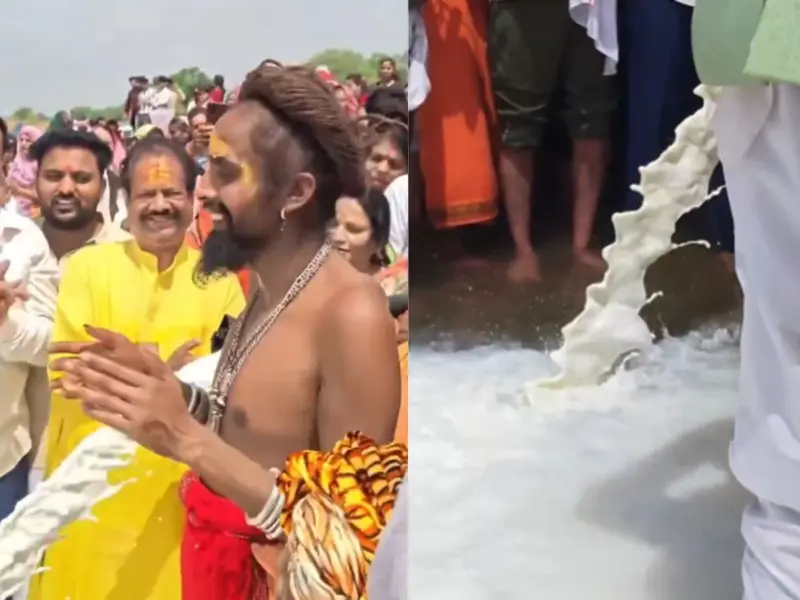 People performed the act, which some observers described as a major religious sacrifice, to fulfill their spiritual vows because they wanted the river's fish to experience the pleasure of 'drinking milk.' The devotees saw white waves that create increasing conflicts.
