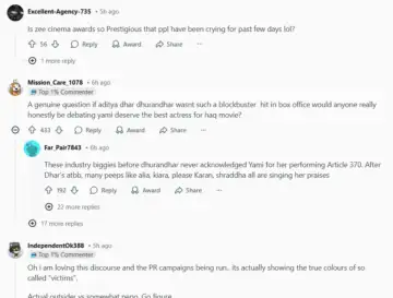 One person on Reddit asked, "If Aditya Dhar's Dhurandhar hadn't been such a box office hit, would anyone honestly be arguing Yami deserved Best Actress for Haq?"