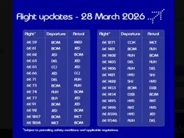 IndiGo has issued a fresh travel advisory, releasing the latest list of flights set to operate on March 28 amid the evolving West Asia situation.