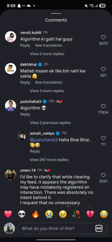 The phrase "algorithm mistakenly registered an interaction" quickly became a part of internet folklore, with fans and even celebrities like singer Rahul Vaidya taking light-hearted digs at the “corporate lingo” used to explain a simple accidental like.