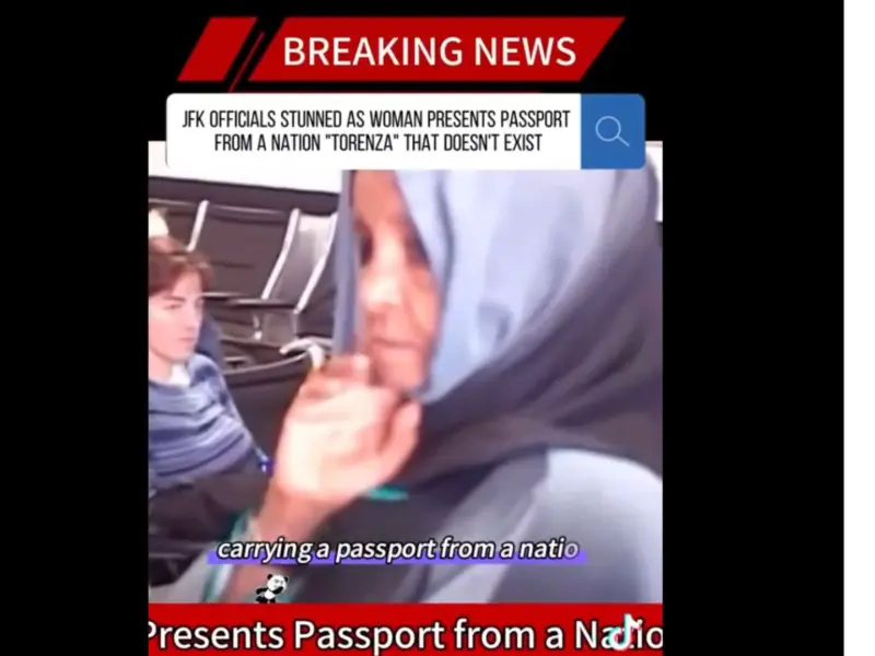 In a shocking video going viral, an old lady at the John F Kennedy (JFK) International Airport, USA, travelled from Tokyo with a passport from a country called 'Torenza'.