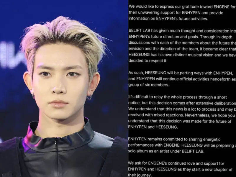 In a statement to Billboard on Wednesday, March 11, the label explained its reasoning, "We concluded that allowing Heeseung to fully focus on his solo career, rather than pursuing solo activities alongside the team, would ultimately be the most fulfilling path for both ENHYPEN and Heeseung."