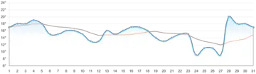 Graph via Ease WeatherPlaces in Himachal, such as Shimla and Kullu, have no warning, while Delhi will experience cold days every day, with partly cloudy conditions in the later part. Plains such as Delhi and Chandigarh are cooler than the mountainous region of Shimla.