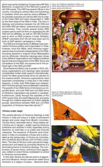 "The presence of Muslims (and Christians) in India is considered a threat and is articulated as the persecution of Hindus by minorities, who constitute about 80 per cent of India's population. The idea of Hindus under permanent siege, persecution and attack by (primarily) Muslims is a dominating theme in Hindutva ideology," the report claims.