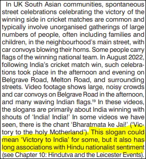 In conclusion, the SOAS University of London report again subtly blames and villainises Hindus by suggesting that Hindus celebrating a match victory saw mosques as 'Pakistani' even though most worshippers there would be Indian Muslims.