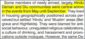 Even as it was Muslim leaders and Islamists like Majid Freeman who were found guilty of instigating violence against Hindus, the SOAS report claimed that Hindus from India's Daman and Diu "were central actors in the events from May until September."
