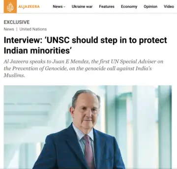 The panel head, Juan E. Méndez, has a record of peddlingthe Muslim victimhood narrative. Previously, Méndez had given an interview to Qatari-state-funded Al Jazeera wherein he called for UN and international intervention in India to “protect Indian minorities”.