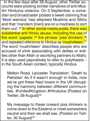 The report claimed that Hindutva organisations and their UK-based supporters amplified a Hindu 'victimhood' narrative on social media under the hashtag #HindusUnderAttackinUK.