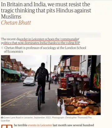 Another researcher, Chetan Bhatt, Professor of Sociology, LSE, had previously written a propaganda article in The Guardian, blaming Hindus for Leicester violence. He equated the RSS with Islamic terrorist entities like Pakistan’s Jamat-e-Islami and Egypt’s Muslim Brotherhood.