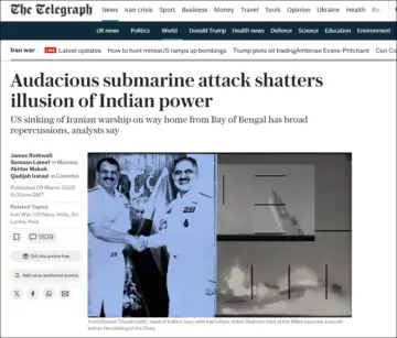 In another anti-India article, Samaan Lateef described the torpedoing of Iran's naval warship IRIS Dena by the US amidst the ongoing war in March this year, as the 'shattering' of the "illusion of Indian power."