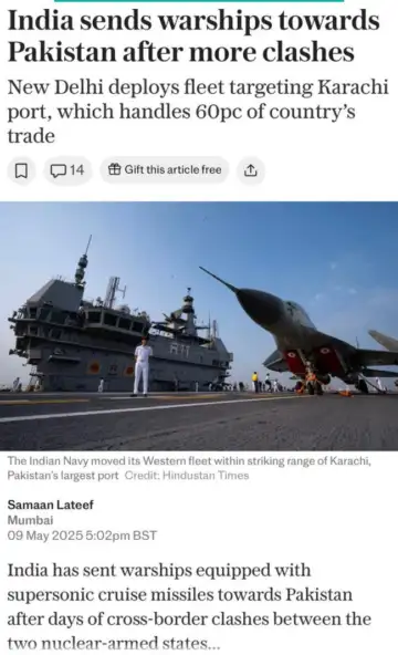 Samaan Lateef's limerence for Pakistan was also seen during Operation Sindoor in May 2025. Lateef has written a story for The Telegraph, which the newspaper had to retract. In the story headlined "India sends warships to Karachi after more clashes", Lateef falsely claimed that New Delhi had deployed a large fleet targeting the Karachi port, which handles 60% of Pakistan’s foreign trade. It also stated that India had sent warships equipped with supersonic cruise missiles following border clashes between the two nuclear powers.