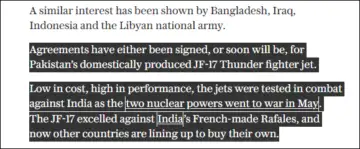 The narrative concocted by Samaan Lateef in the British media outlet was then amplified by the Pakistani media and other ISPR-trained and planted Pakistani journalists in Western media outlets. The Telegraph article's rapid, uncoordinated cascade of announcements, "countries lining up to buy Pakistani jets" bogey, reeked of classic state propaganda, perfectly timed to counter India's Rafale acquisitions, and rising interest in purchase of India's battle-tested weaponry post Operation Sindoor, wherein Indian forces pounded Pakistan in the aftermath of Pahalgam Islamic terror attack and stopped after achieving desired objectives.