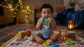Watch out for signs like increased fussiness (especially in the evening), increased drooling, chewing on random objects, rubbing mouth or face, mild rise in body temperature and face rash.
