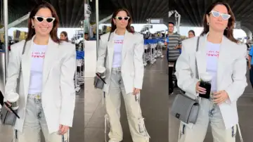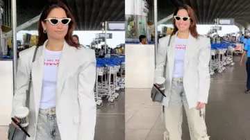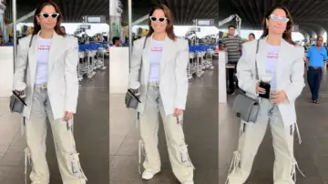Takeaway? Tamannaah Bhatia's airport look indicates that one can travel comfortably while still looking stylish. From typography tees and fitted a blazer to comfy cargo pants, white sneakers, and a Chanel bag, she's given the ultimate playbook for chic airport dressing.